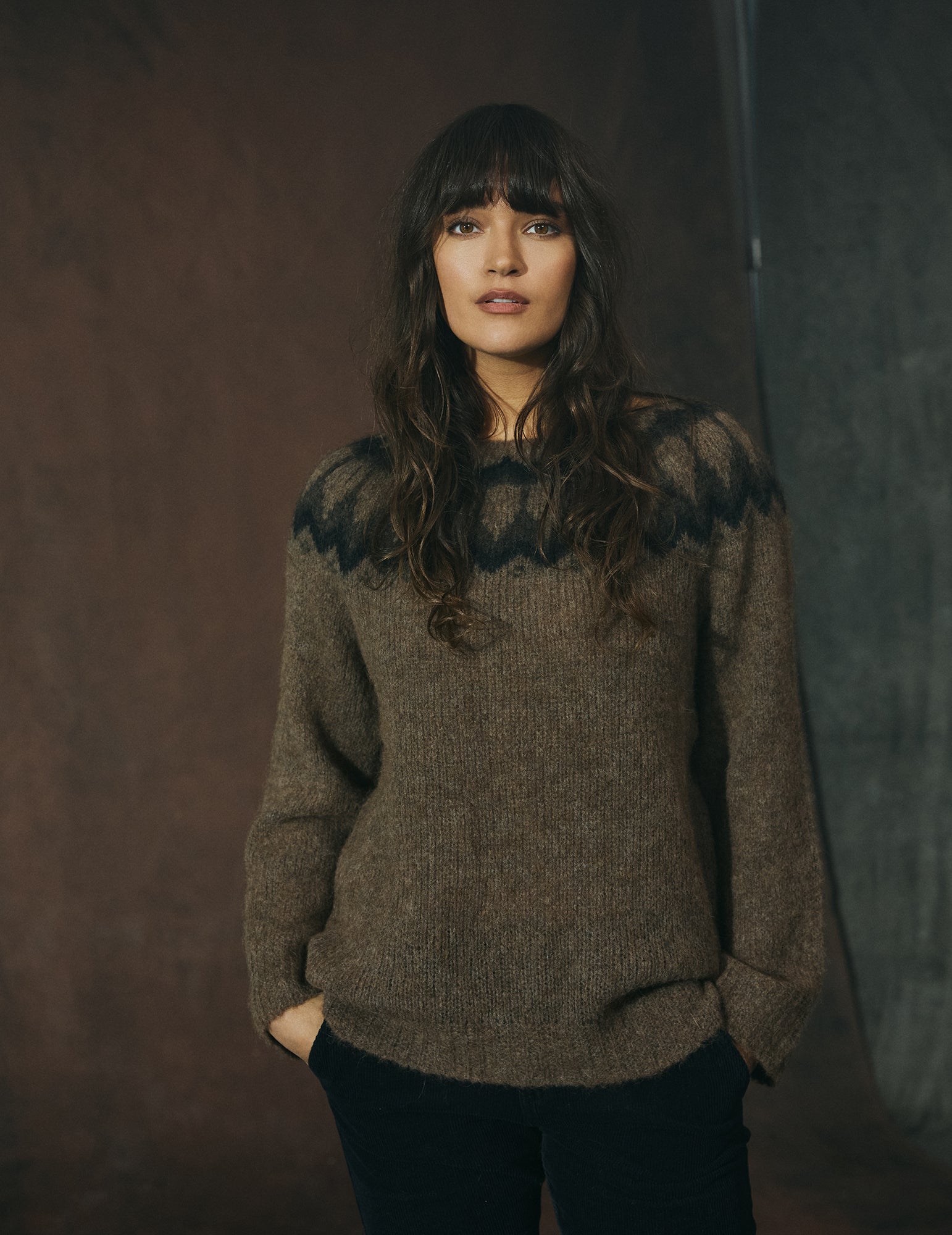 A warm, cozy and lightweight Alpaca sweater. A new version of a classic style that has been in our collection from the beginning.