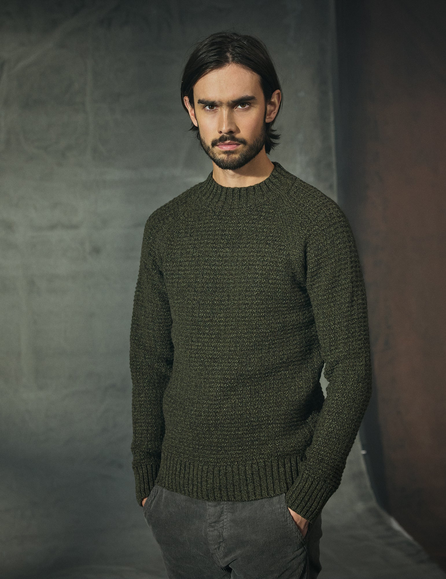 Model measures: Height 185cm / 6’1”, chest 97cm / 38”